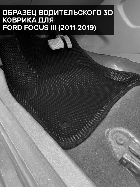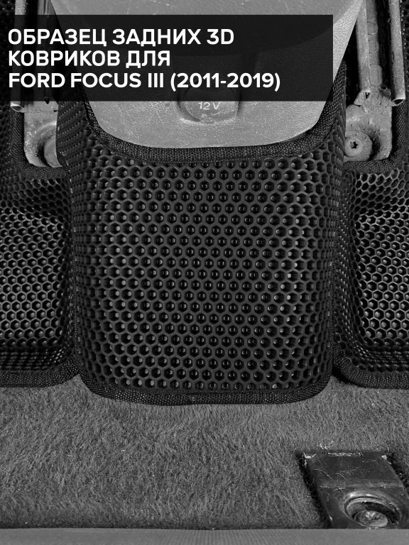 Автомобильные 3д коврики для Ford Focus III седан, хэтчбек, универсал (2011-2015) в салон авто и багажник сделаны из инновационного полимерного материала EVA, изысканная структура в виде ячеек не дает воде, пыли и снегу разлетаться по салону машины и багажнику. 3д коврики зафиксированы на полу определенными клипсами, соответствующими Ford Focus III седан, хэтчбек, универсал (2011-2015), и не двигаются в процессе езды.